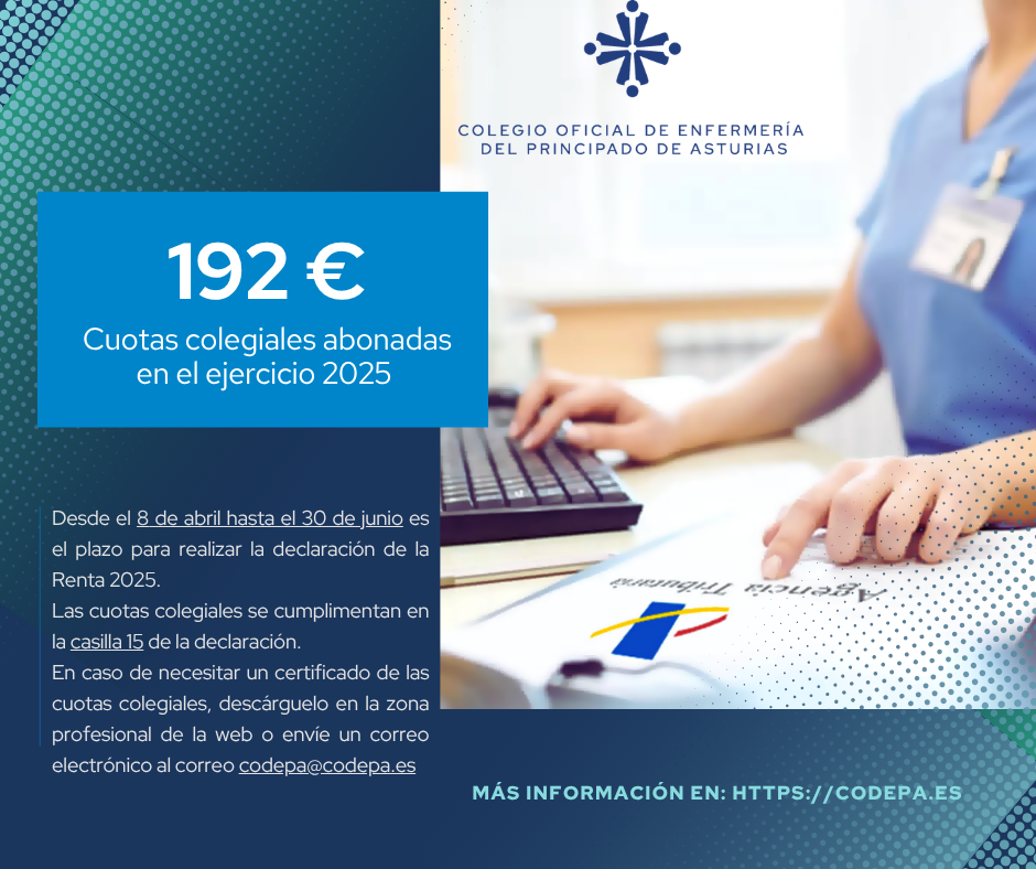 Ante la campaña de la declaración de la Renta del ejercicio 2025, el Colegio de Enfermería del Principado de Asturias ofrecerá ayudas económicas a las/os colegiadas/os que las soliciten.