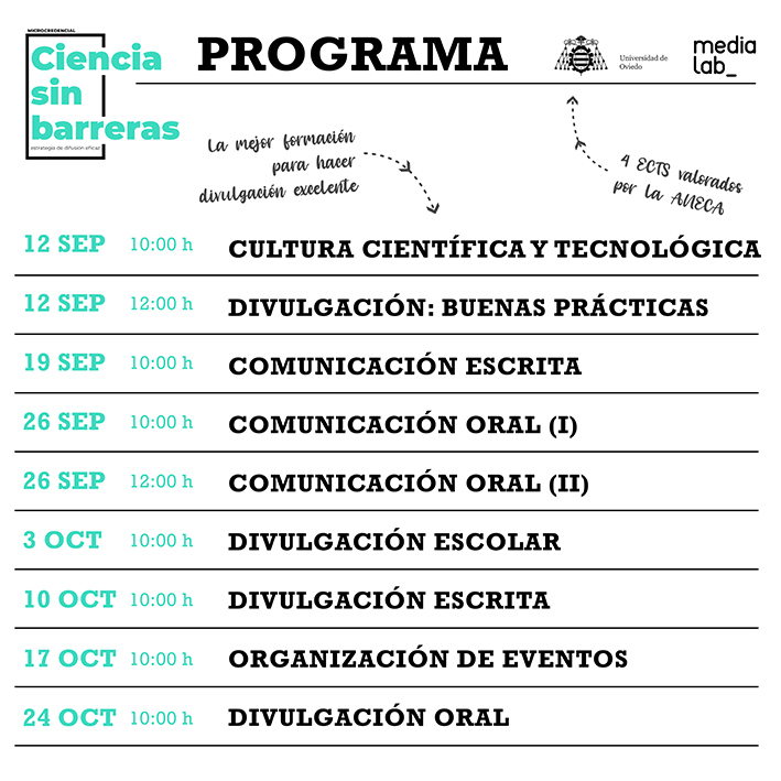 Duración: 1 hora por sesión, en horario de tarde (aún por concretar la hora de cada sesión)